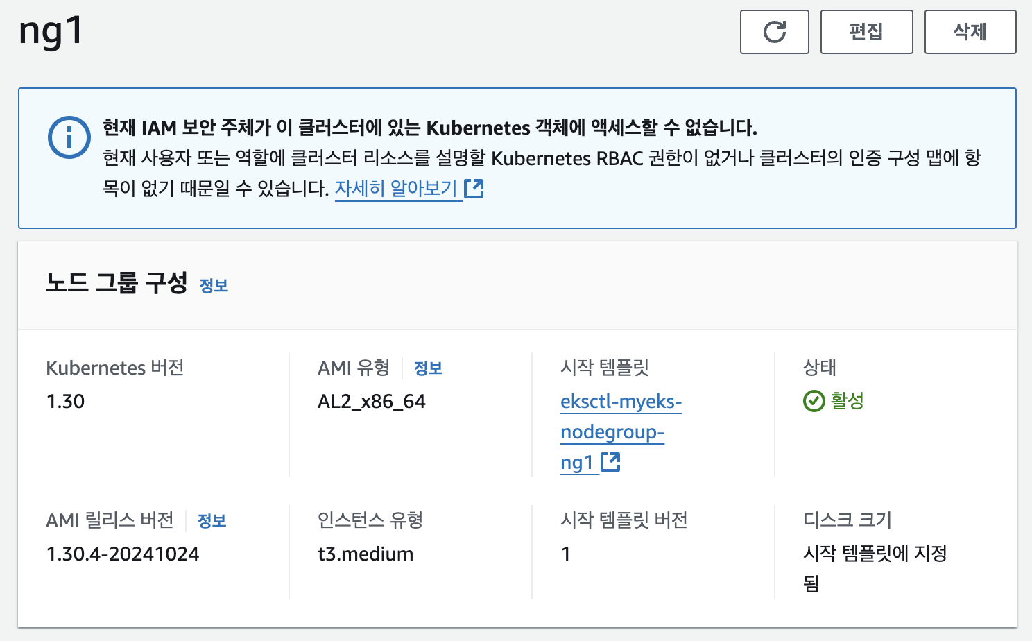 시작 템플릿을 이용하여 노드그룹을 생성해서 추가합니다.