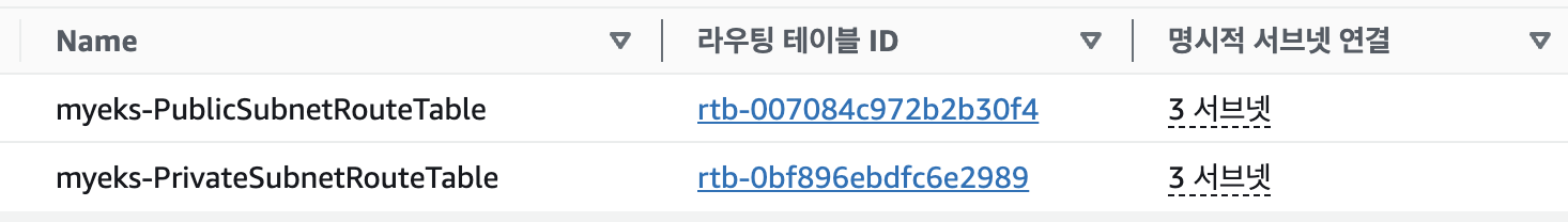 프라이빗/ 퍼블릭 서브넷도 3개씩 생성합니다. CIDR를 보면 같은 대역 처럼 보이지만 라우팅 테이블을 보면 어디로 연결되어있는지 확인해볼 수 있습니다.