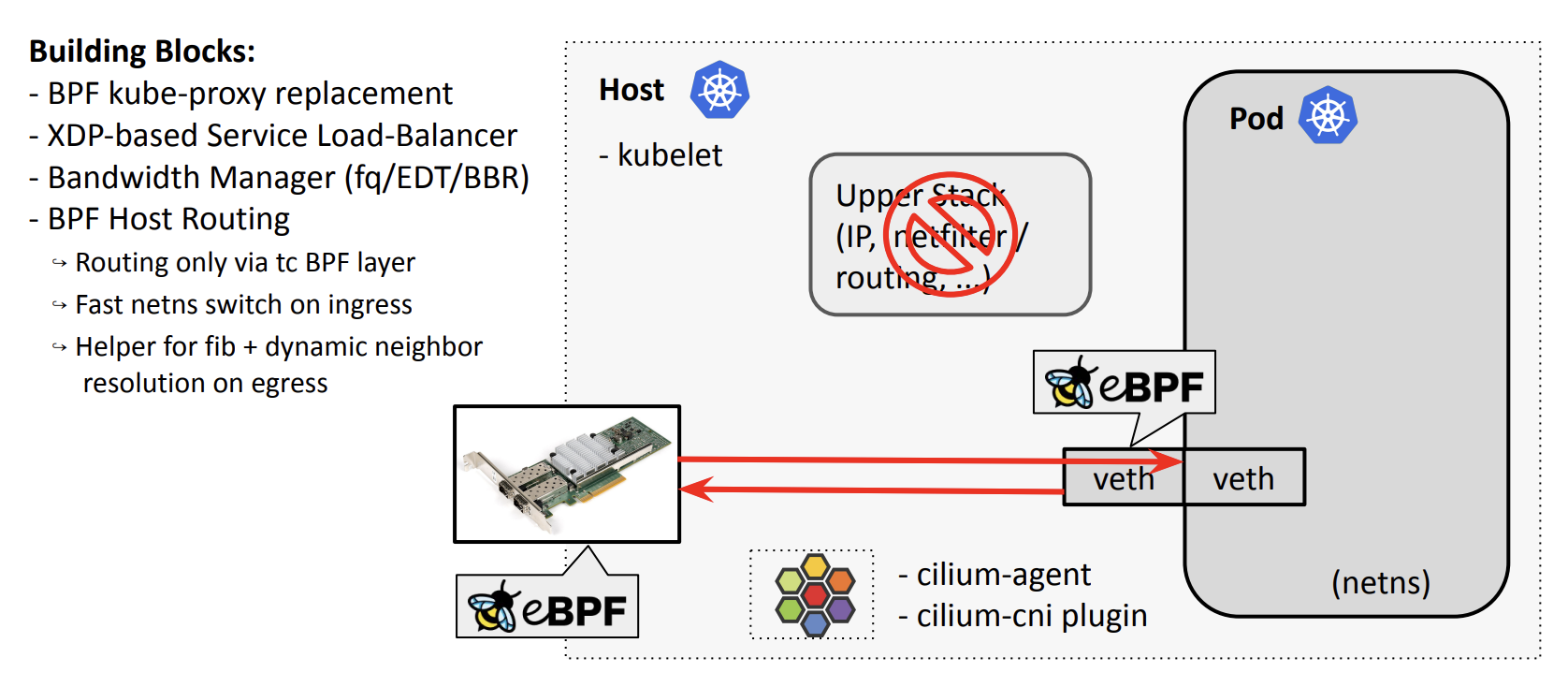- 기존에는 Pod ↔ Host 간 라우팅이 상위 네트워크 스택을 거쳐야 함 → 라우팅할 때 상위 네트워크 스택을 거치지 말자