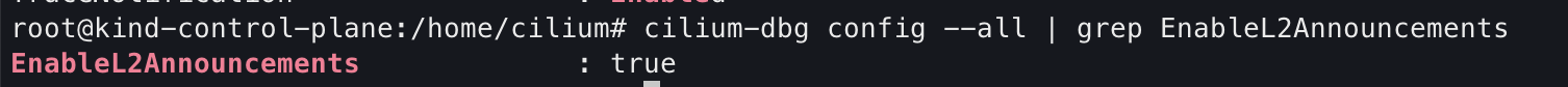 $ kubectl -n kube-system exec ds/cilium -- cilium-dbg config --all | grep EnableL2Announcements