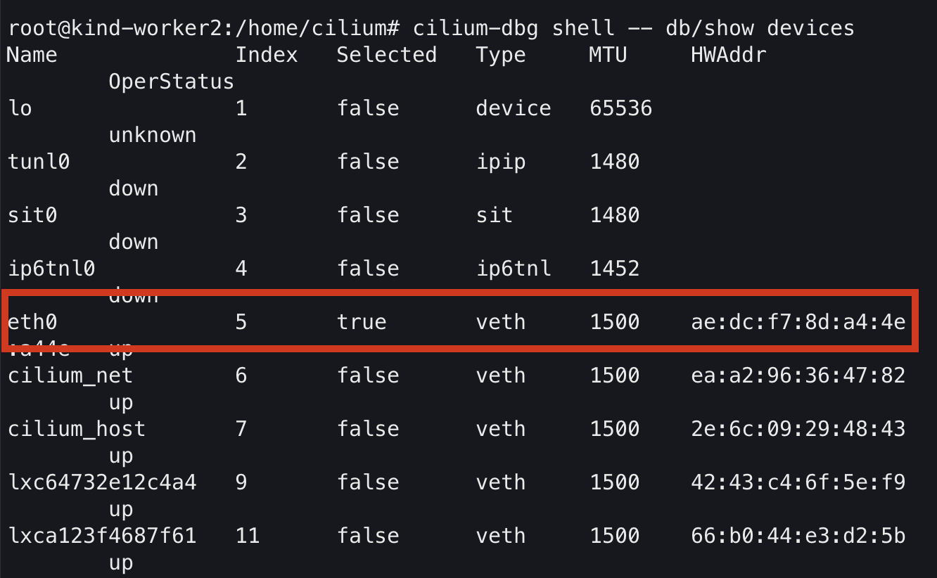 cilium-dbg shell -- db/show devices