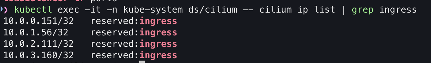 kubectl exec -it -n kube-system ds/cilium -- cilium ip list | grep ingress