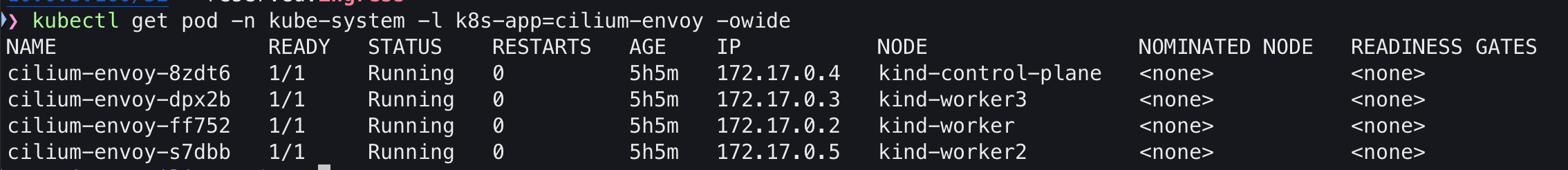 kubectl get pod -n kube-system -l k8s-app=cilium-envoy -owide