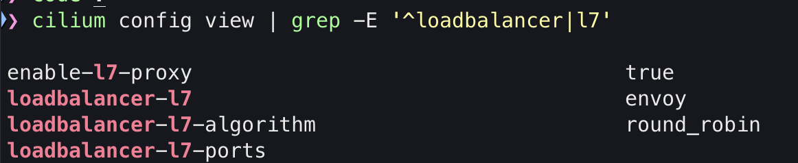 cilium config view | grep -E '^loadbalancer|l7'