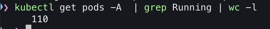 러닝 중인 파드의 수도 110개로 150개의 파드를 1개의 노드에서 생성하지 못합니다.