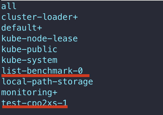 테스트 네임스페이스(test-cpo2xs-1)에서 만개의 configmap이 생성된 것을 확인할 수 있습니다.