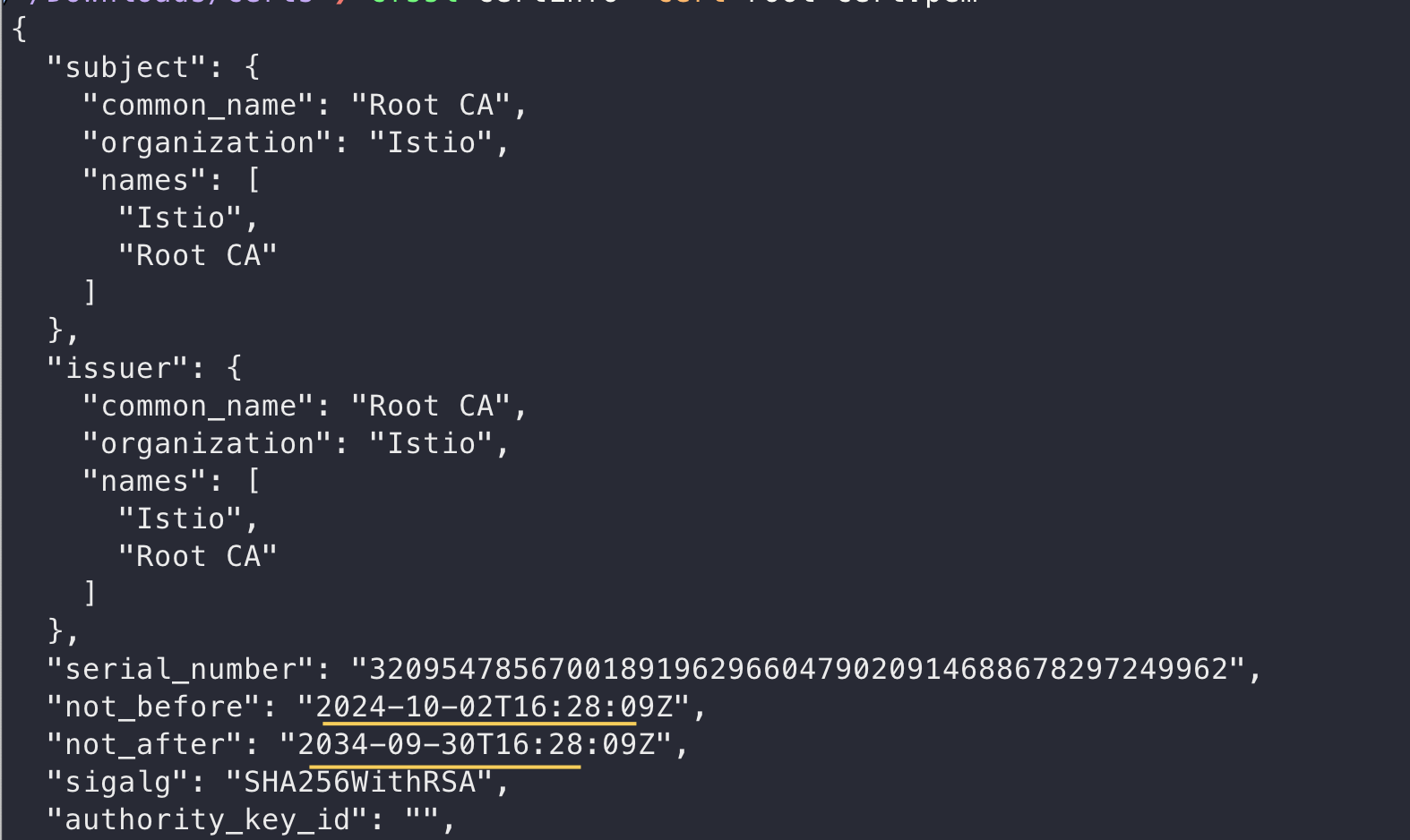 cfssl certinfo -cert root-cert.pem | jq