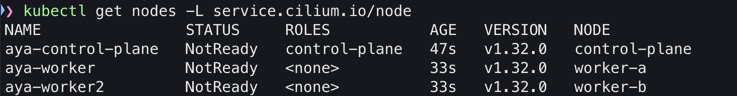 kind create cluster --name aya --config labeled-cilium.yaml