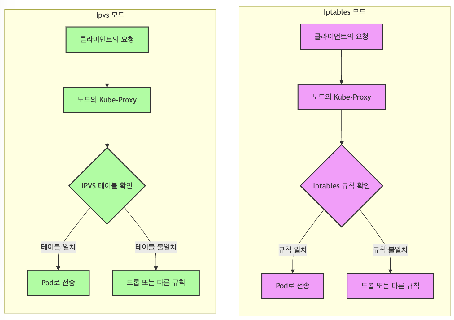 IPVS 는 리눅스 커널에서 동작하는 소프트웨어 로드밸런서이다. 백엔드(플랫폼)으로 Netfilter 를 사용하며, TCP/UDP 요청을 처리 할 수 있다. PVS는 L4 계층에서 동작하며, 다양한 로드 밸런싱 알고리즘을 통해 서비스 요청을 여러 백엔드 서버로 분산시켜 트래픽을 효율적으로 관리합니다. 이를 통해 대규모 트래픽 환경에서도 안정적인 서비스를 제공하며, 고성능 로드 밸런싱을 필요로 하는 Kubernetes 클러스터에서 주로 사용됩니다. IPVS 모드는 커널 레벨에서 직접 작동하기 때문에 빠르고 확장성 있는 네트워크 트래픽 처리가 가능합니다. iptables 의 rule 기반 처리의 성능 한계와 분산 알고리즘이 없어서, 최근에는 대체로 IPVS 를 사용한다.