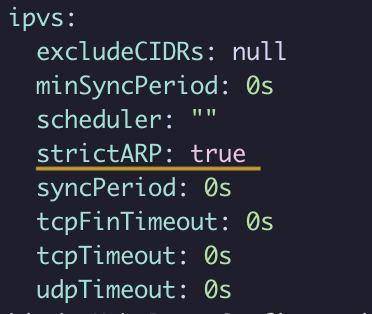 이후에 MetalLB를 설치해서 테스트 하려면 strictARP를 true로 설정해야합니다. IPVS 모드에서 strict ARP가 활성화되면, 노드의 인터페이스는 자신에게 할당된 IP 주소에 대해서만 ARP 응답을 보내게 됩니다. 이는 IPVS로 로드밸런싱할 때 ARP 패킷이 잘못된 인터페이스로 전달되는 문제를 방지합니다. 이 설정은 특히 클러스터 내에서 여러 노드가 동일한 IP를 갖는 VIP(Virtual IP)를 사용하는 경우 중요합니다.
