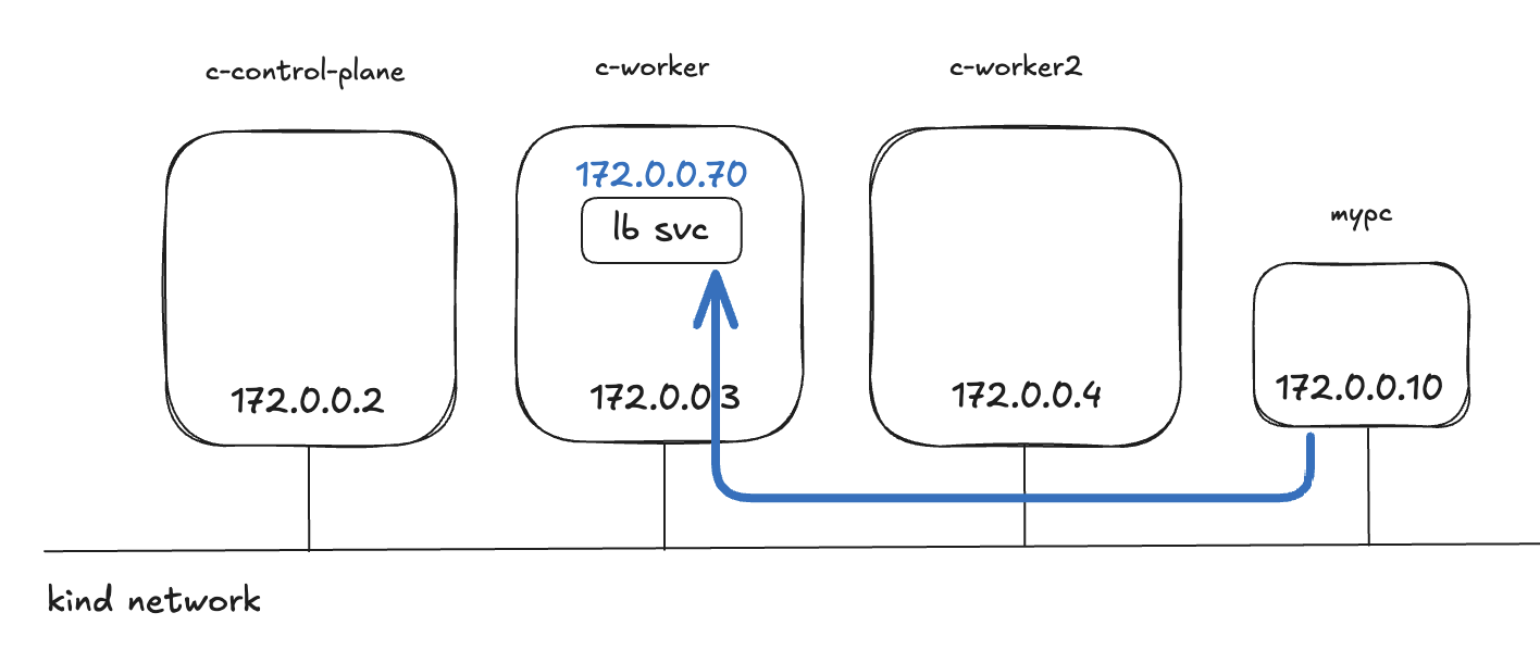 기본적으로 IPAM을 통해 대역을 설정하면 LoadBalancer는 정상적으로 생성되긴 하지만, 이 설정으로는 클러스터 내부에서만 동작합니다. 이번 글의 목표는 다양한 환경에서 외부에서도 접근 가능한 LoadBalancer를 테스트할 수 있는 구성을 만드는 것입니다.