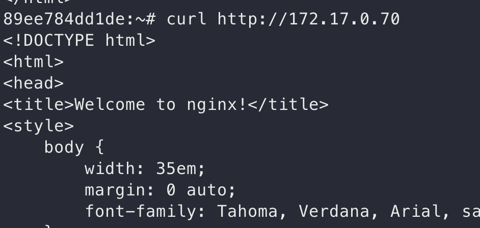 별도의 설정을 하지 않았다면 보통은 kind 네트워크를 사용합니다. 같은 네트워크 대역에 컨테이너를 만들 예정이기 때문에 해당 네트워크 브릿지를 사용해서 컨테이너를 하나 생성하도록 합니다. netshoot 이미지는 다양한 네트워크 도구들이 설치되어있는 이미지 입니다.