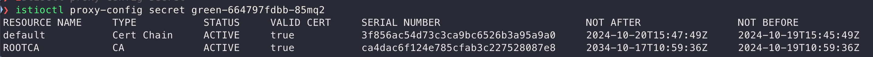 istioctl 명령어를 통해 인증서 정보를 확인하고 각각의 만료일도 확인해볼 수 있습니다.