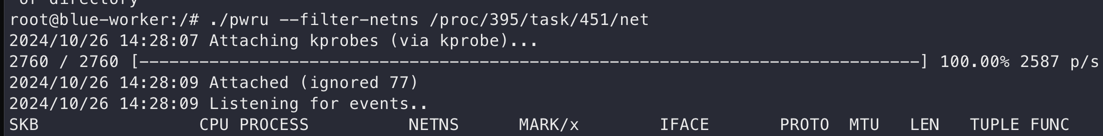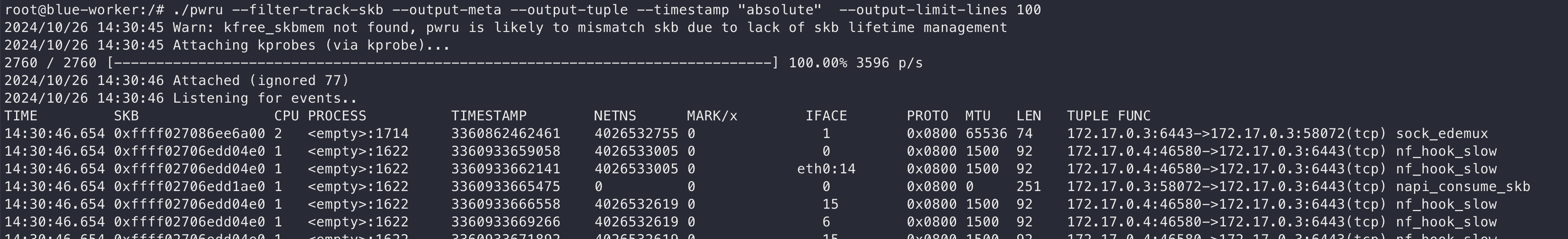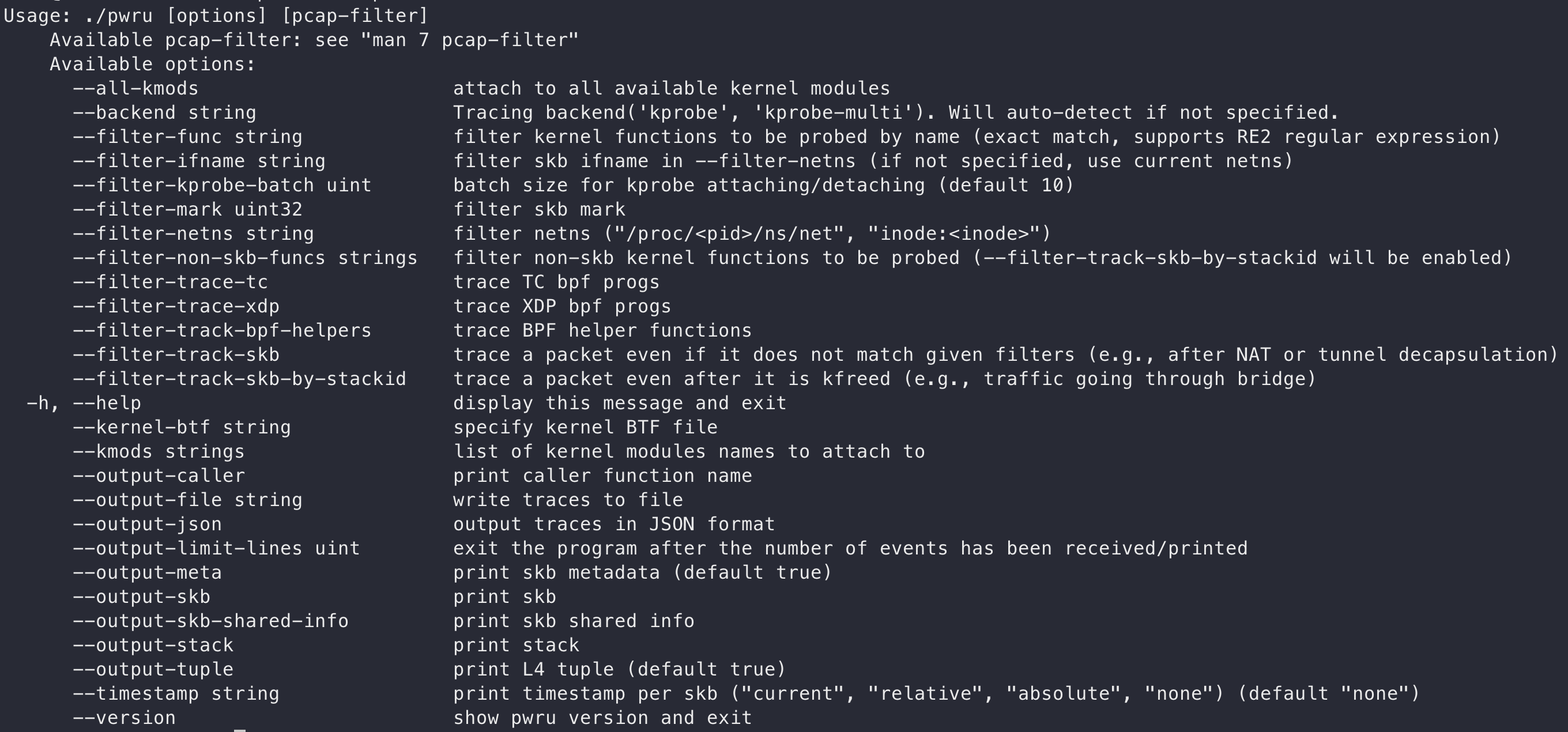 pwru는 tcpdump처럼 목적지의 아이피로 가는 트래픽을 추적하게 하거나 하는 등의 설정도 가능하지만 좀 더 다양한 방식의 추적이 가능합니다. (ex pwru dst port 80 )
